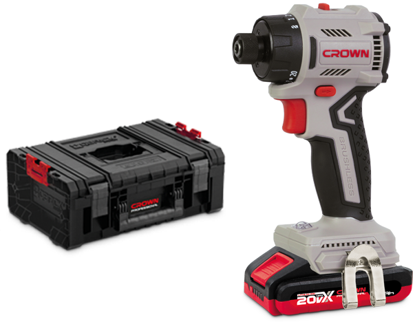 Enables changing between 2 operation modes: screwdriving (screwing / unscrewing threaded fasteners) or drilling (in wood, metal, plastic).
